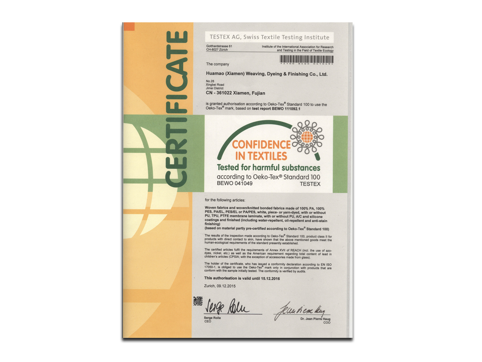 Huamao is a large corporation which specializing in Polyamide & Polyester from ATY yarn forming to weaving, dyeing, finishing, coating and lamination.